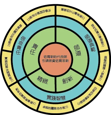 「志業良師」以「師道」為先,以「教育志業」為本,發展「實踐智慧」。教育目標分別是「師道典範、信念責任、實踐智慧」;師道典範的核心價值即為「師道」,信念責任的核心價值即為「責任」,而實踐智慧的核心價值在於從實踐反省後的「精緻」與「創新」,用以深化教學實務,引領教育革新。本學程設定學生要具備的核心能力是: